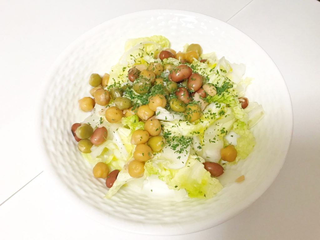 マルヤナギのサラダチキンと蒸しサラダ豆、白菜のレンチンで作る【チョー簡単サラダ】 これ一品でも満腹になれる