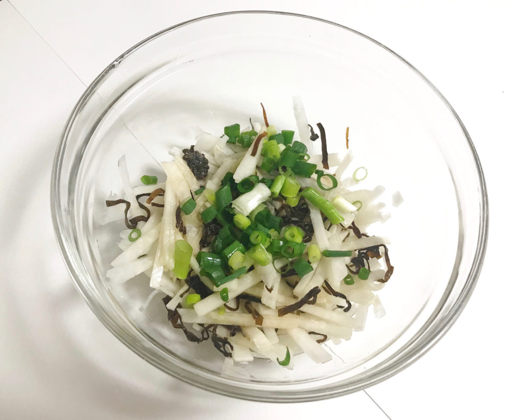 【チョー簡単あと一品】塩昆布と大根の千切りを和えるだけ 仕上げにごま油を加えると美味しさアップ