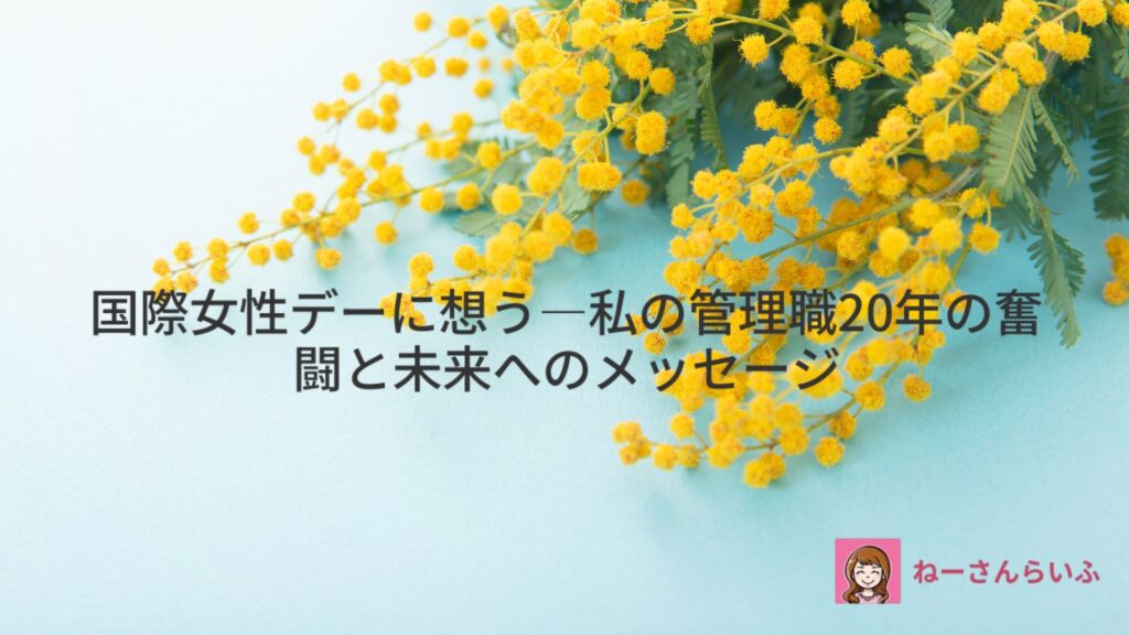 こんにちは。女性管理職20年の いくみ(@nesan_blogger)です。 3月8日は「国際女性デー」。女性管理職として20年奮闘してきた私としては、感慨深い…