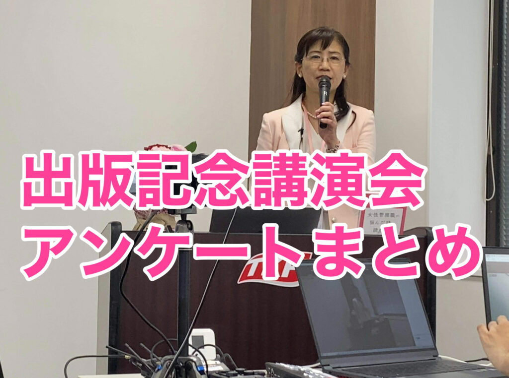 拙著『女性管理職が悩んだ時に読む本』出版記念講演会を2023年5月27日に開催。 会場参加者には、アンケート用紙を配布。オンラインと後日アーカイブご参加者にはメ…
