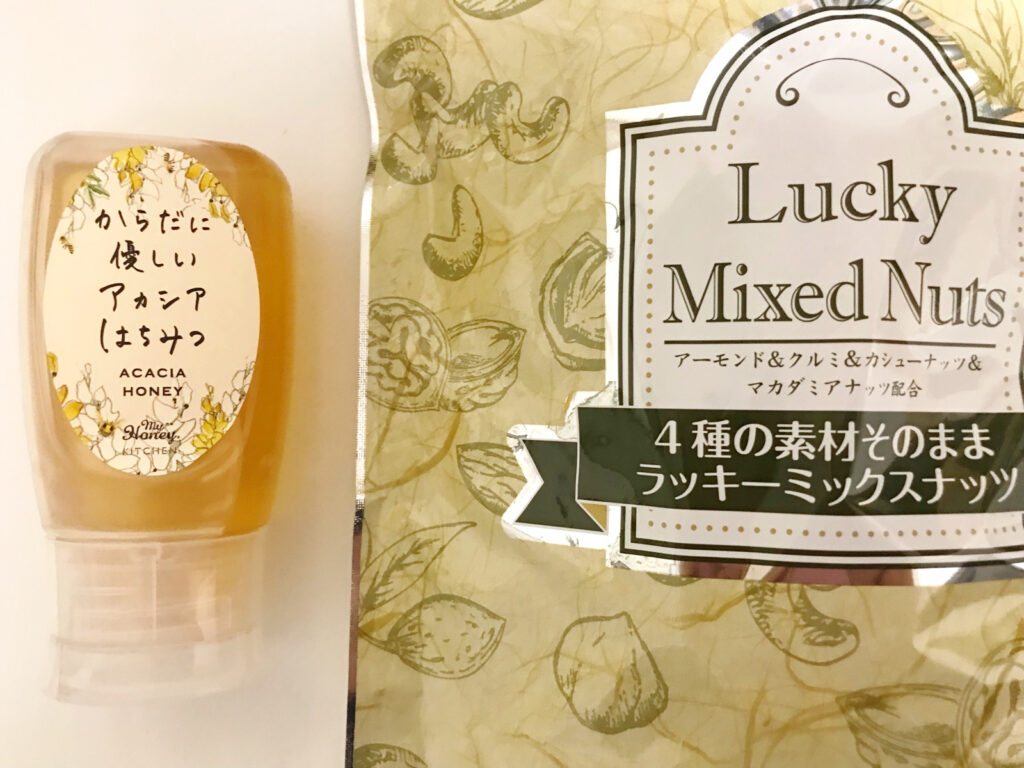 健康によいオヤツ【ナッツとはちみつ】オススメは「MYHONEYのはちみつ」と「ラッキーミックスナッツ無塩」